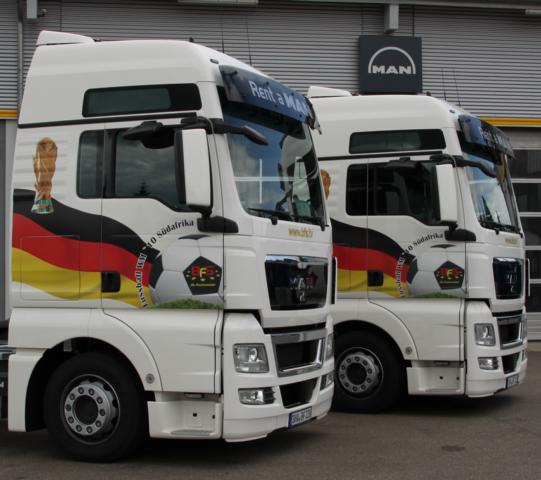 22.6.2010 Vollgas für die Nationalmannschaft Unser Kunde BFS hat zwei WM-Trucks im exklusiven Design aufgelegt. Die Brummifahrer sind jetzt schon zu beneiden. Die Fahrzeuge glänzen außerdem durch hervorragende technische Daten.