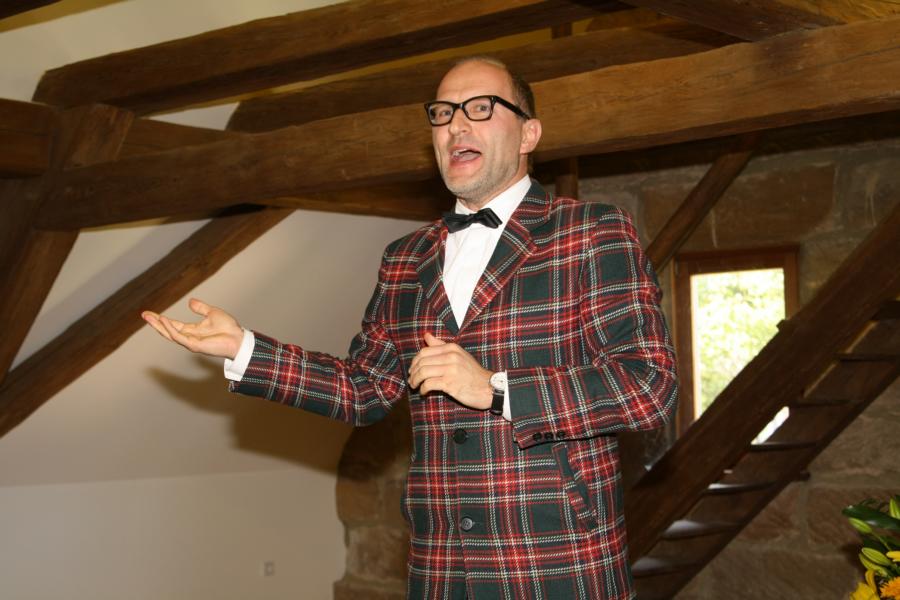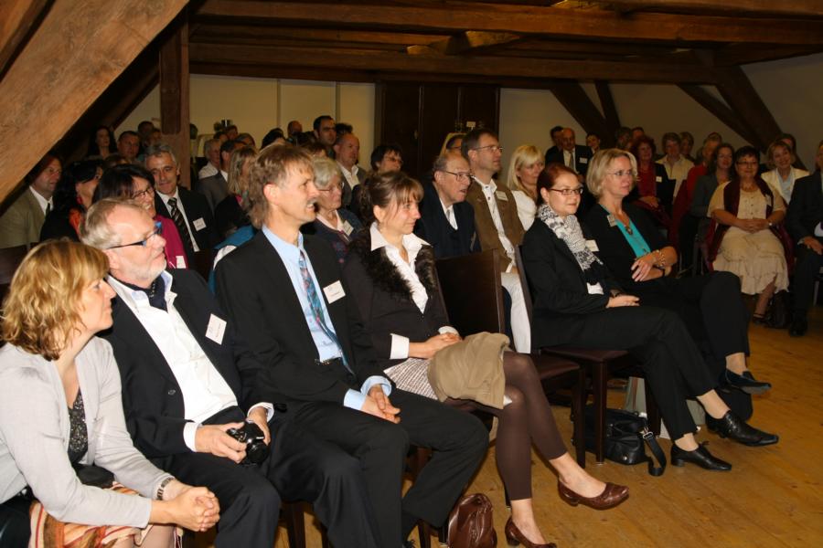 9.10.2010 10 Jahre Lingva Eterna: Festakt auf Schloss Atzelsberg Mit einem großen Festakt auf Schloss Atzelsberg (bei Erlangen) hat das Institut Lingva Eterna sein 10-jähriges Bestehen gefeiert. Institutsgründerin Mechthild R. von Scheurl-Defersdorf (Foto rechts oben, Mitte) ließ die Geschichte ihres Instituts Revue passieren und ehrte Dr. Theodor von Stockert für seine langjährige Unterstützung. Stargast des Tages war der Kabarettist Dr. Oliver Tissot (unten links), der mit Wortwitz und Sprachakrobatik ganz hervorragend zum Anliegen von Lingva Eterna passte: Das Institut bietet diverse Sprachtrainings und Bücher, welche die Kommunikation nachhaltig verbessern und gleichzeitig die Persönlichkeit entfalten helfen. Wir gratulieren unserem Kunden Lingva Eterna ebenfalls ganz herzlich!