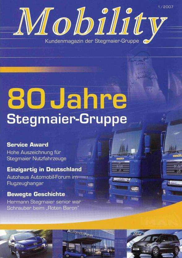 Anlässlich des 80-jährigen Firmenjubiläums unseres Kunden Stegmaier sollte eine 60-seitige Kundenzeitschrift erstellt werden. Sie sollte aktuelle Berichte und Reportagen sowie einen Abriss der Firmengeschichte enthalten. Es sollten außerdem Anzeigen für die Zeitschrift verkauft werden.